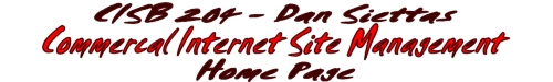 Welcome to MY Index Page For CISB 204...... Not much to say here but this will be the main link source to all my assignments for this class that need to be posted here! Click a link on the left to view what is posted for that assginment!